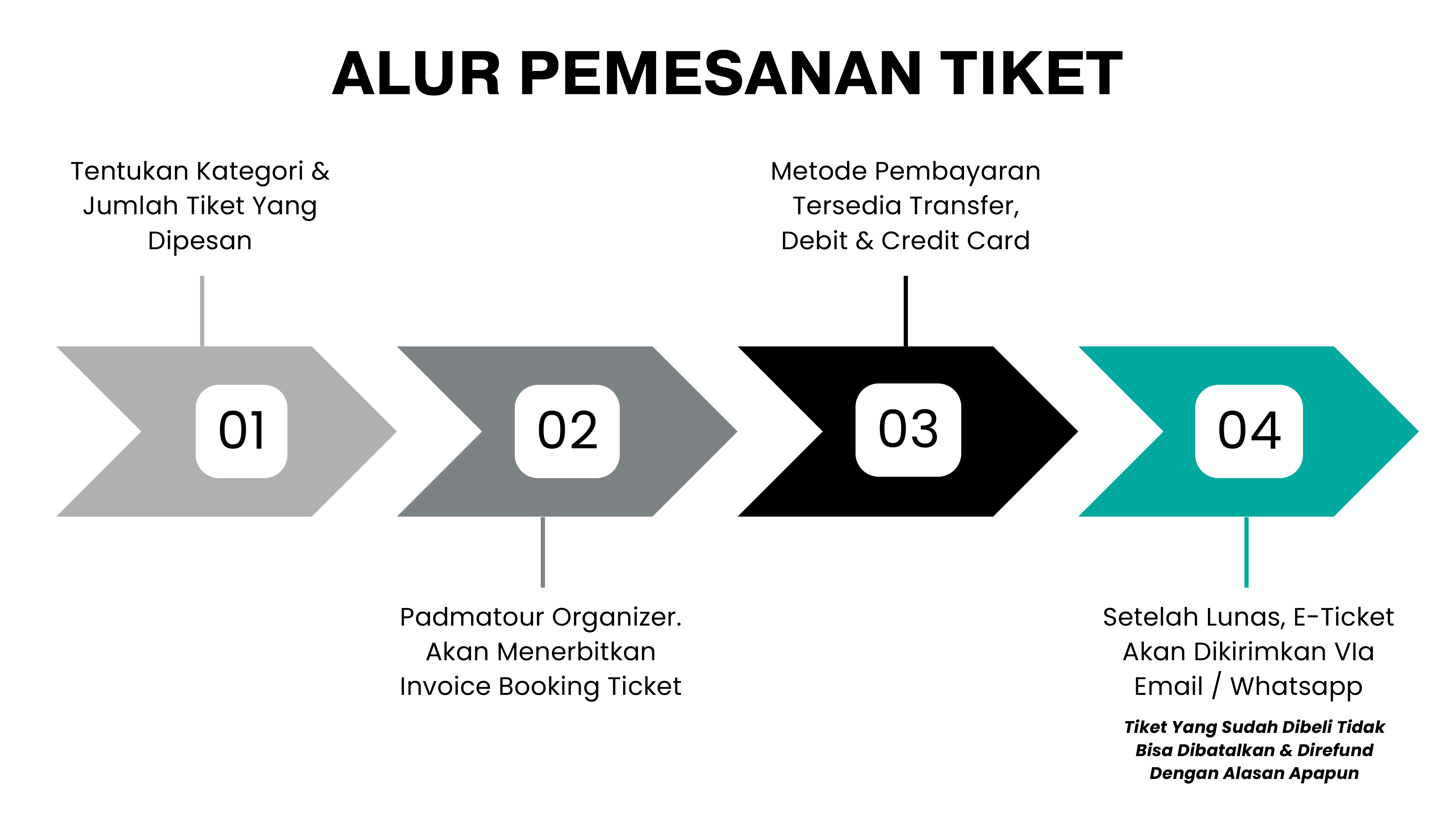 Tiket yang sudah dibeli tidak bisa dibatalkan dan direfund dengan alasan apapun